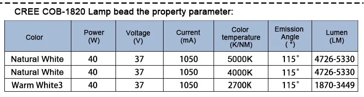 CREE COB CXA-1820 шарик лампы свойство параметр: