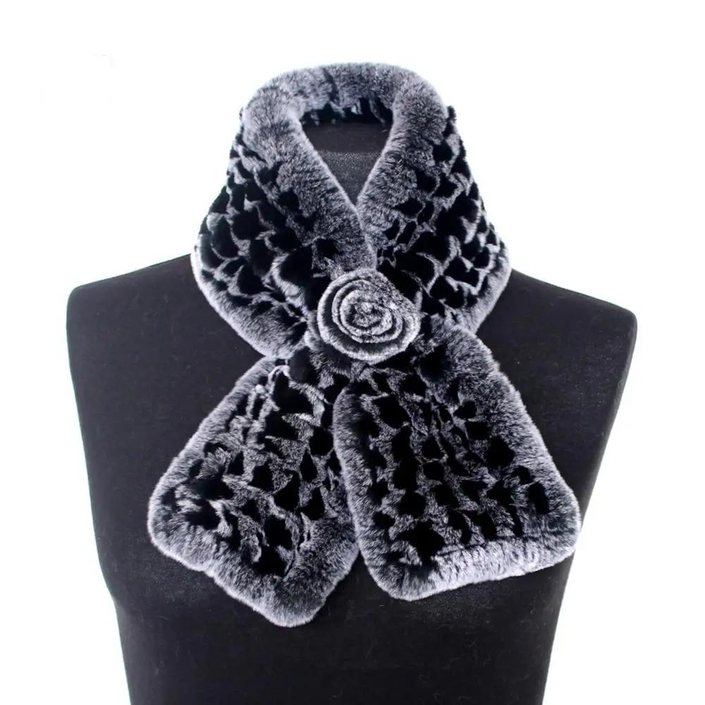 Меховые шарфы из натурального кроличьего меха, женские зимние осенние клетчатые меховые вязаные теплые уплотненные меховые накидки S107