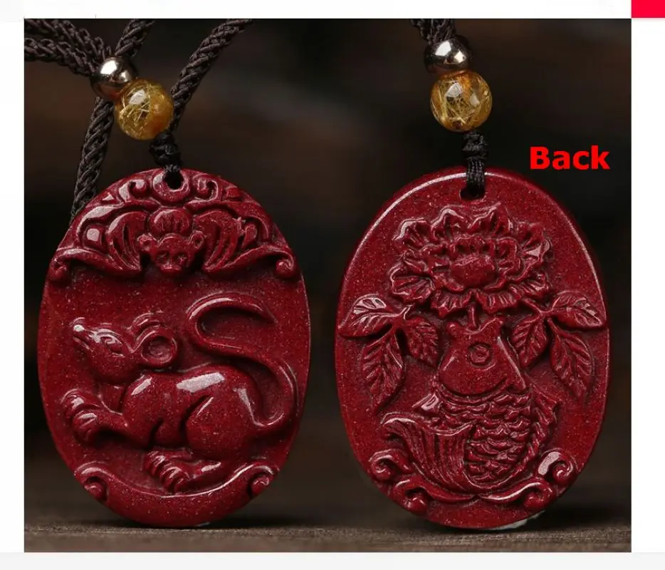 Отличный волшебный Zinnober Маус амулет кулон "крыса" Churinga Китайский 12 Зодиак талисман драгоценный камень украшения