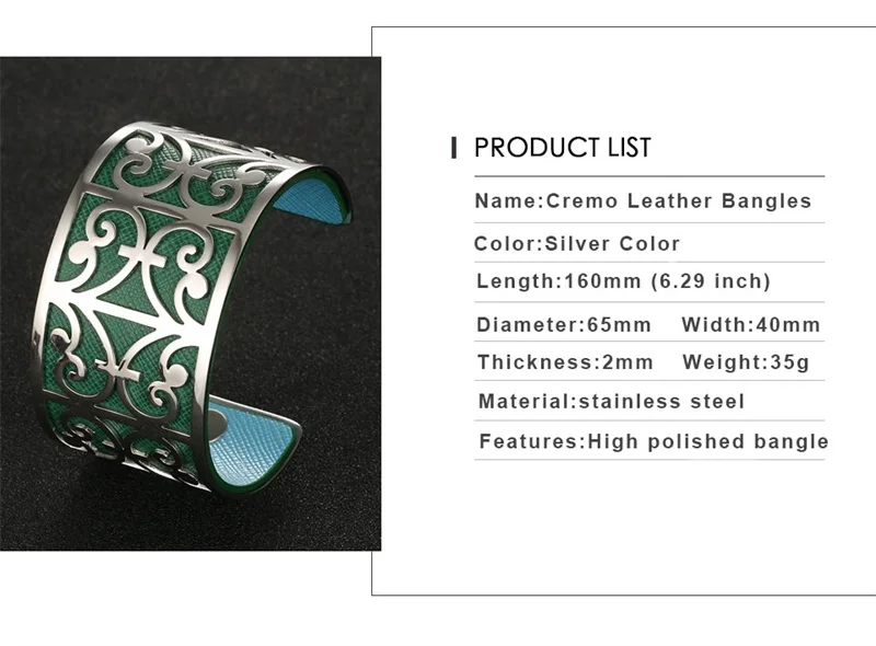 Информация о продукте Тип Манжеты: браслет из нержавеющей стали. Материал: нержавеющая сталь + из искусственной кожи. Пол: всех женщин. Емкость: около 40 мм/35 г. Дизайн: двусторонний Браслет-манжета из искусственной кожи DIY. Повод: Свадьба, помолвка, юбилей, вечерние, подарок на день Святого Валентина. Примечание: 1. DIY браслет ювелирные изделия, полированный, регулируемый, Реверсивный взаимозаменяемый из искусственной кожи. 2. Удобное Сенсорное стекло. Уникальное творчество, один браслет, весь мир. 3. Мы стремимся производить высококачественные товары с гламурным, продуманным и креативным дизайном.