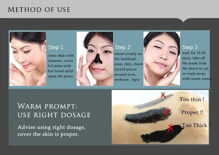 Step1 clean skin with cleanser, cover 3-5 mins with hot towel until open the pores