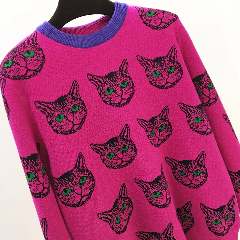 Harajuku Модный женский свитер, теплый жаккардовый свитер с рисунком кота, высокое качество, маленький размер, зимний женский Повседневный пуловер, вязаный Топ
