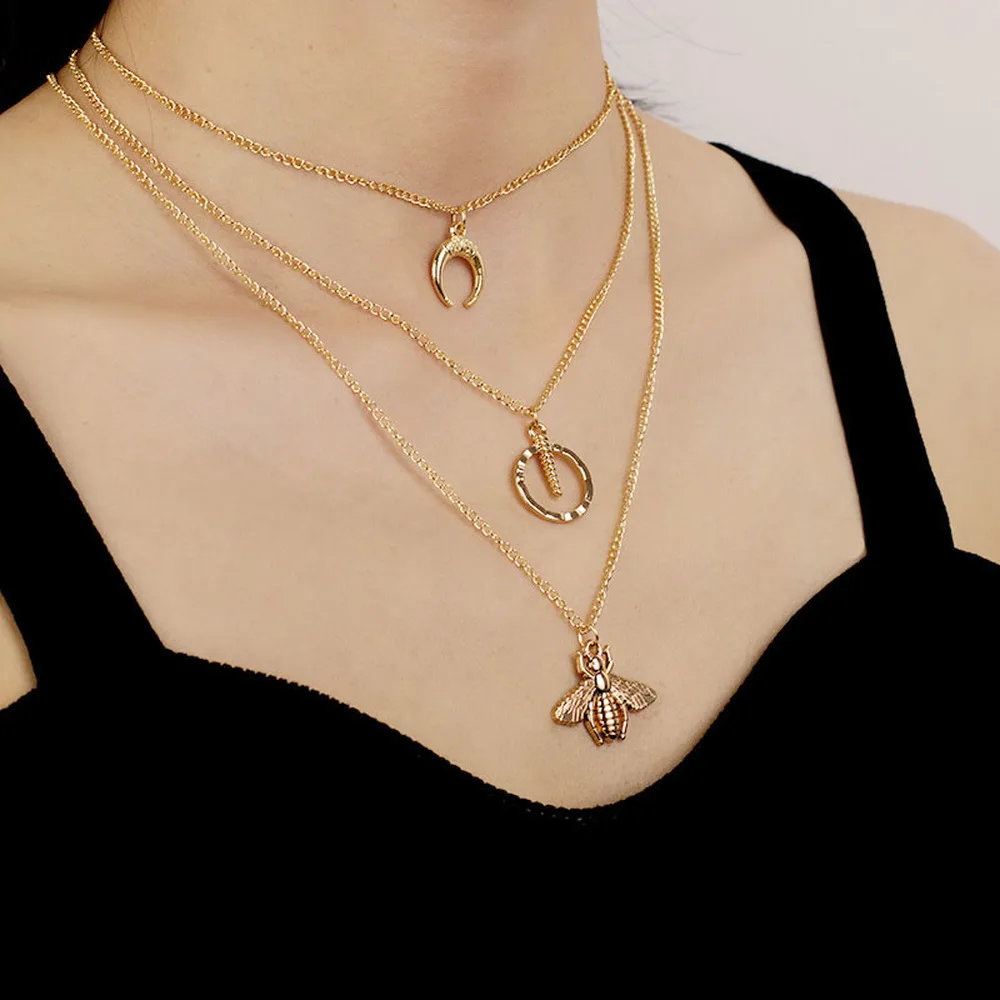 Серебряное Золотое модное милое ожерелье с Пчелкой, изысканное креативное многослойное ожерелье с Луной для женщин и девушек