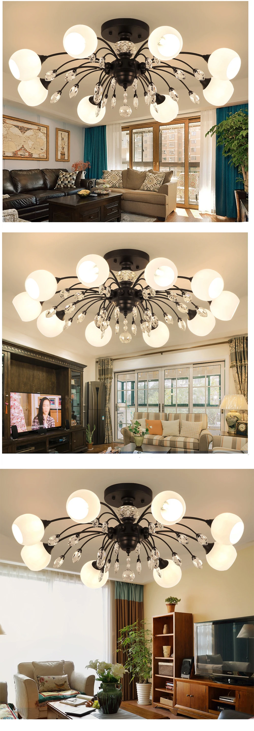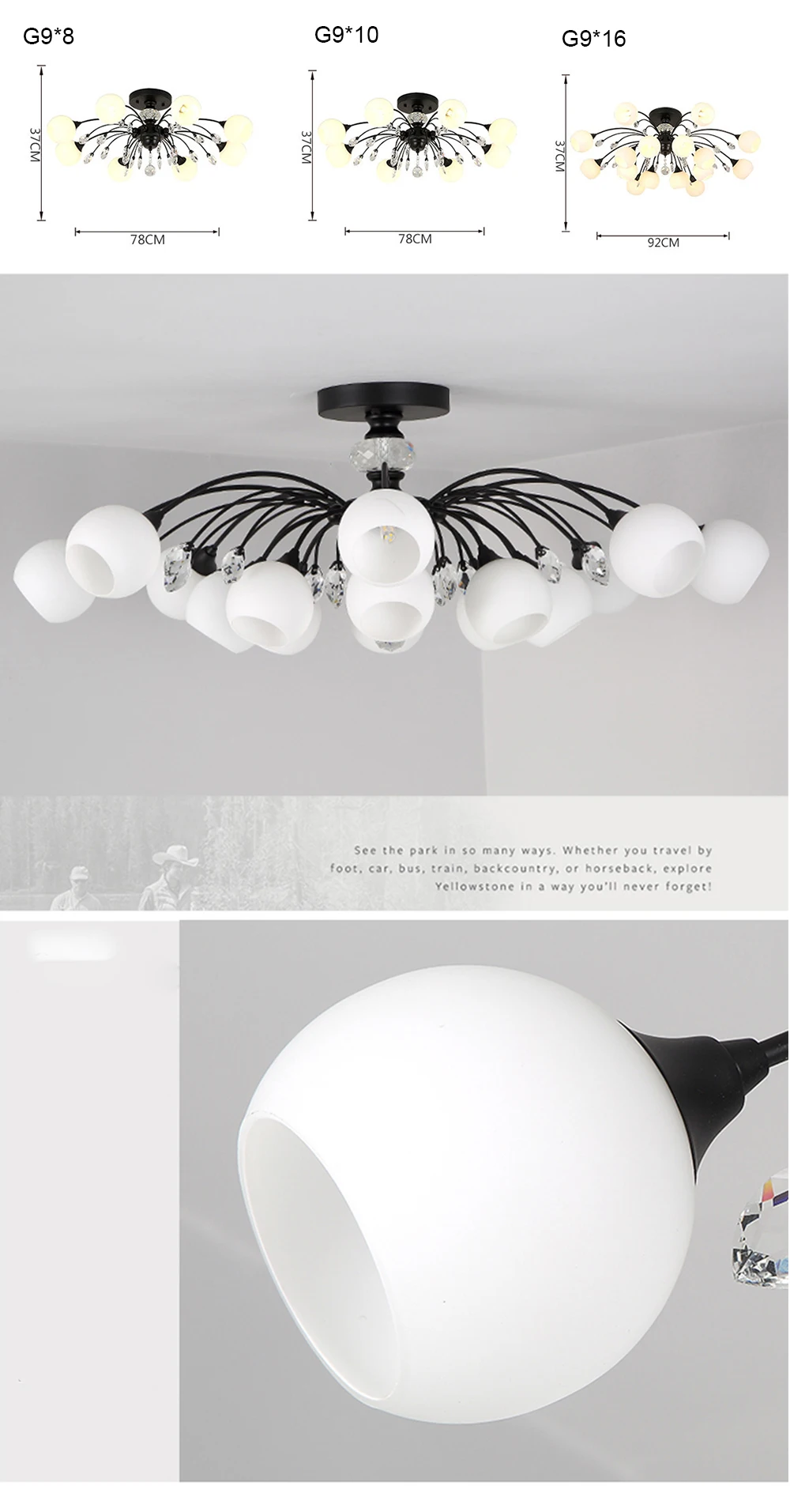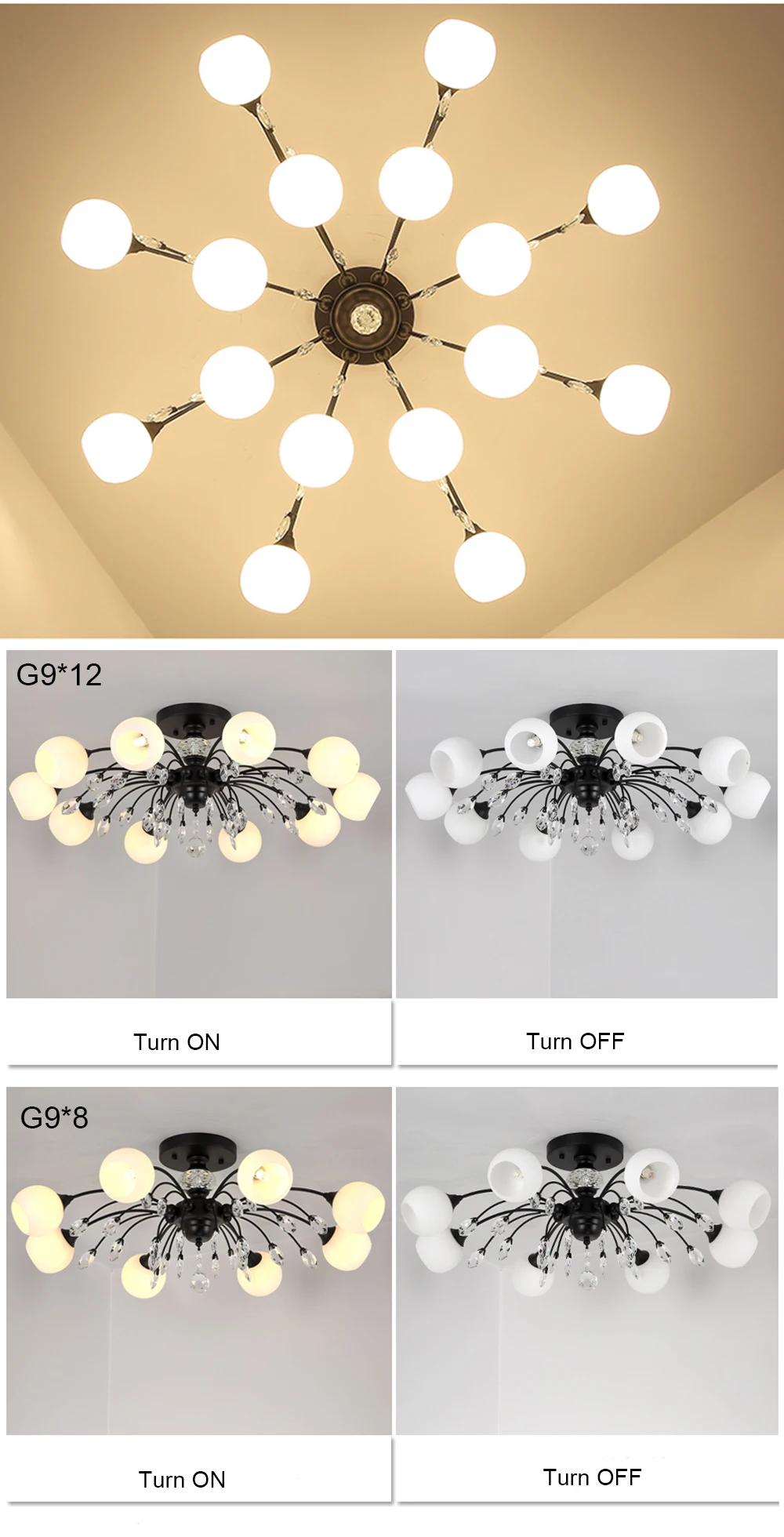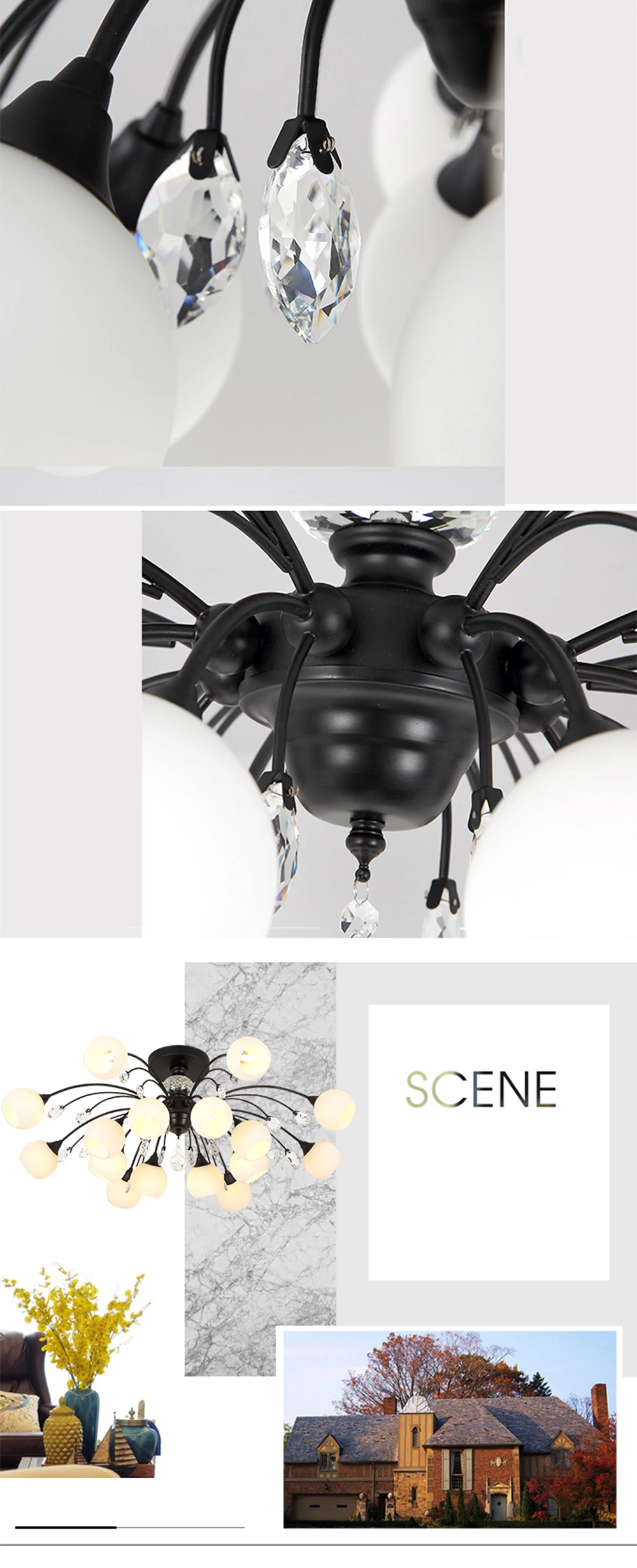 Материал: железо, хрусталь Цвет: прозрачный, черный светильник Разъем: E14 (лампа в комплект не входит) Напряжение: 85-265 в (универсальное в мире)