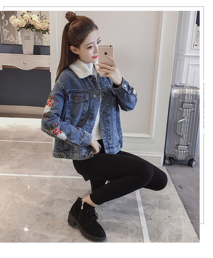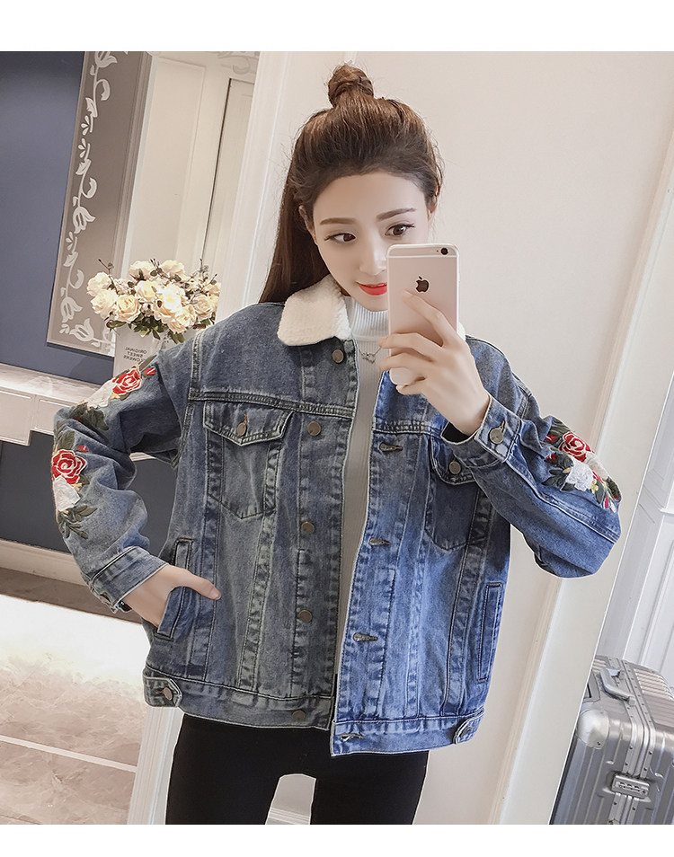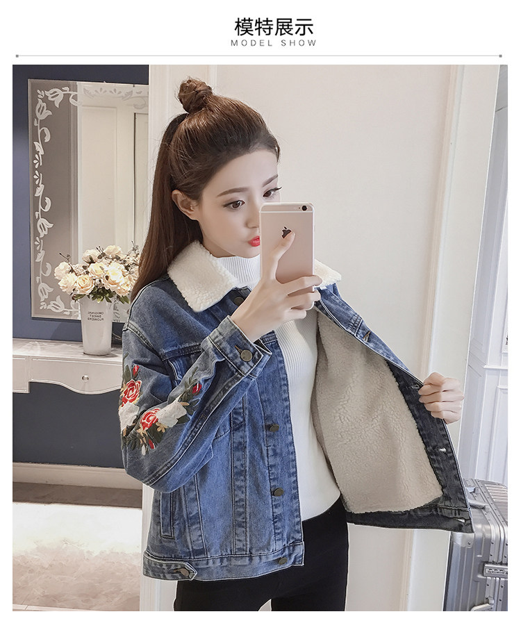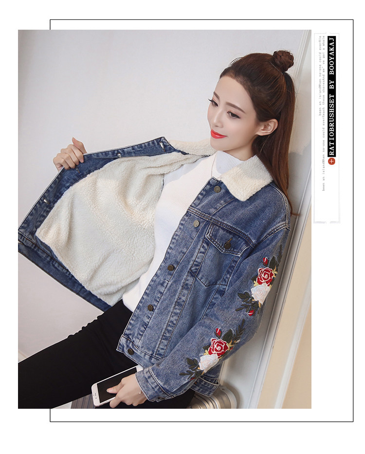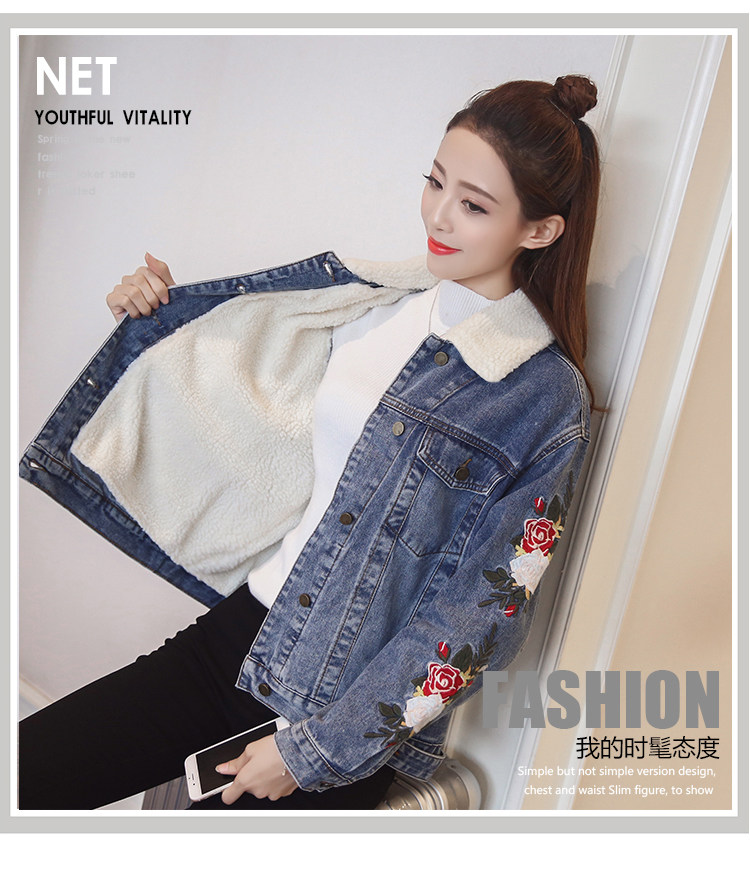 THHONE/джинсовая куртка для женщин; Зимнее пальто; Теплая Флисовая вышивка; Модная Chaqueta Mujer; Джинсы; Зимние куртки; Женские джинсовые пальто; 2018