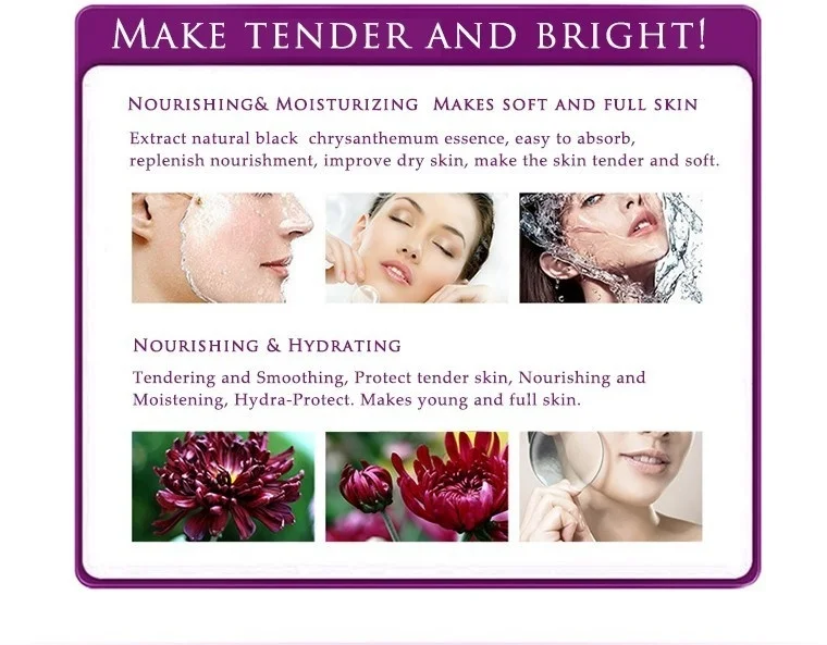Выбирайте экстракт черной хризантемы, разнообразие увлажняющих и увлажняющих элементов, Ощущение гладкости, нежности и мягкости.