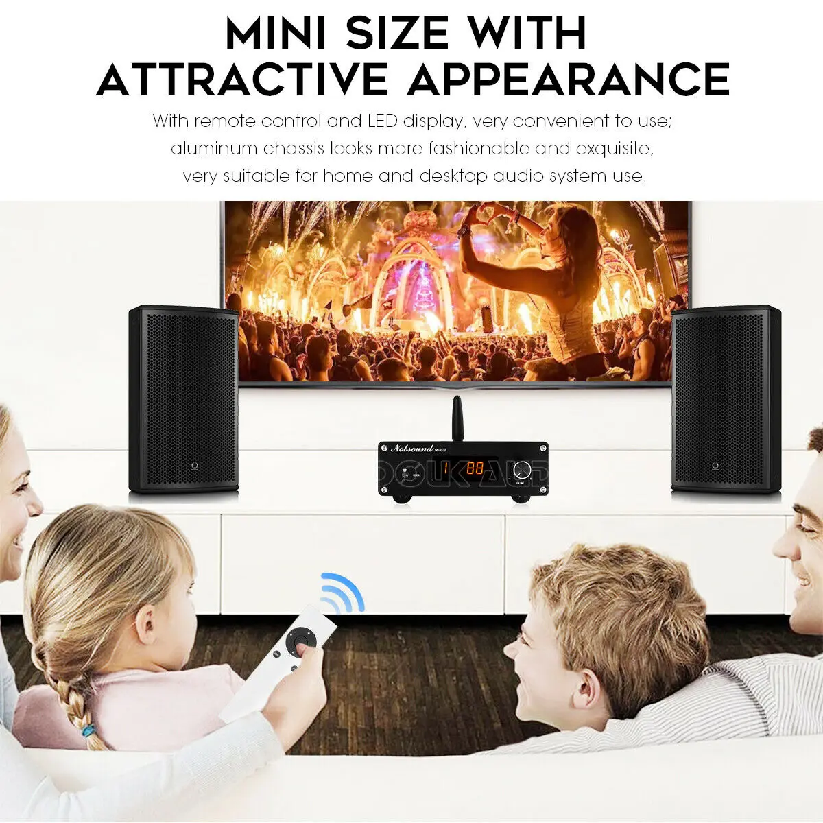 Мини-размер с привлекательным внешним видом, с пультом дистанционного управления и светодиодным дисплеем, очень удобен в использовании; Алюминиевое шасси выглядит более модно и изысканно, очень подходит для домашнего и настольного использования аудиосистемы.