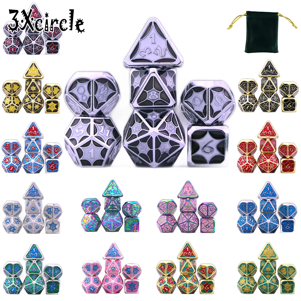 7-die металлический многогранный набор игральных костей с мешочком для DND RPG настольная доска рулон игральных игр D4 D6 D8 D10 D % D12 D20US $6,99 /