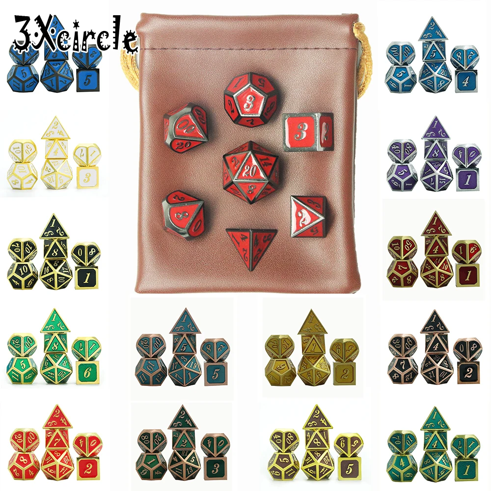 7 dice многогранный DND Металл для ролевых игр игральные карты с коричневым мешкомUS $10,98 /