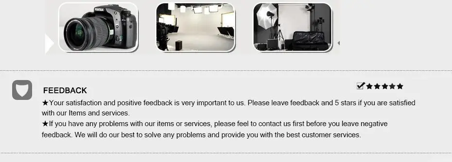 4. Отзывы очень важен для нас, пожалуйста, пожалуйста, дайте нам 4 или 5 звезд положительный отзывы. Если вы встретите какие-либо проблемы, попробуйте связаться с нами, мы рады помочь вам решить любую проблему.