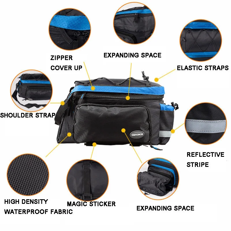 | Многофункциональная сумка для заднего сиденья велосипеда с ручкой для переноски и регулируемым плечевым ремнем, может использоваться в качестве сумки и сумки на плечо. Емкость для хранения 15л обеспечивает большое пространство для ваших предметов, полезное ездовое оборудование для любого велосипедиста. Особенности: Большая емкость: Эта сумка включает в себя основное отделение, 2 боковых кармана и задний карман, 15 л большой вместимости, достаточно большой, чтобы сохранить ваши предметы первой необходимости хорошо организованы. Внутренний накладной карман позволяет эффективно использовать пространство. Более высокая видимость и безопасность: Светоотражающая полоса увеличивает видимость в ночное время, а вешалка на ленте может держать задний фонарь, который также может повысить безопасность езды на велосипеде в ночное время. Простая установка: крепежный ремешок для легкой и быстрой установки на всех типах велосипедов с задним сиденьем, таких как горный велосипед, дорожный велосипед и т. д. Несколько функций: с ручкой для переноски и регулируемым плечевым ремнем, сумка также может использоваться как сумка и сумка на плечо. Хорошая защита: эластичная лента на верхней части сумки может помочь сохранить вашу бутылку воды, одежду или карты надежно на сумке. Высококачественная конструкция из полиэфирного материала с прочной структурой и наполнителем из ПЭ хлопка обеспечивает полную защиту ваших вещей. Двойная застежка-молния, удобно снимать ваши вещи. Характеристики: Материал: полиэстер Емкость: 15 л (включая все карманы) Цвет: 5 цветов Размеры: 36*20*18 см Вес изделия: 830 г Посылка: 1 * велосипедная сумка |