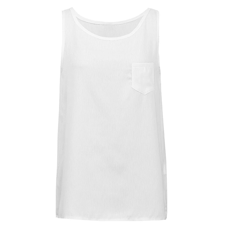 Свободный Топ на бретелях с однотонным карманом на груди, круглым вырезом и без рукавов. Сочетайте его с джинсами с высокой талией, чтобы завершить образ.