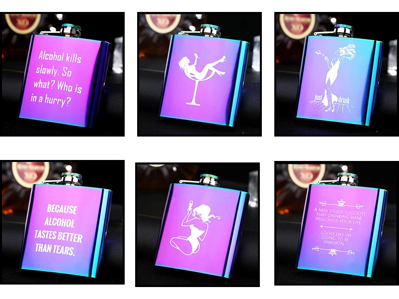 Большая часть розовой фляги составляет 8 унций, а красочная фляга-6 унций.