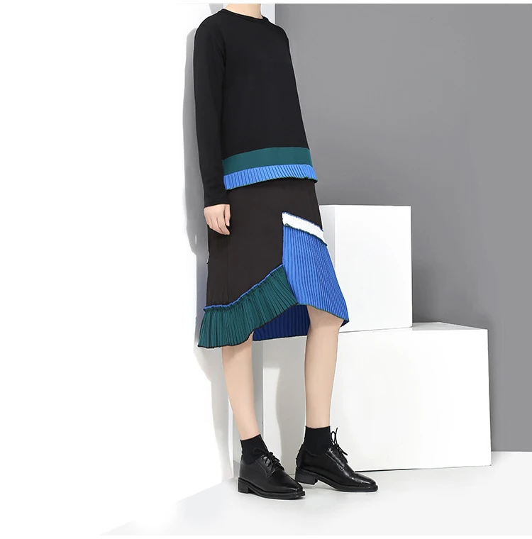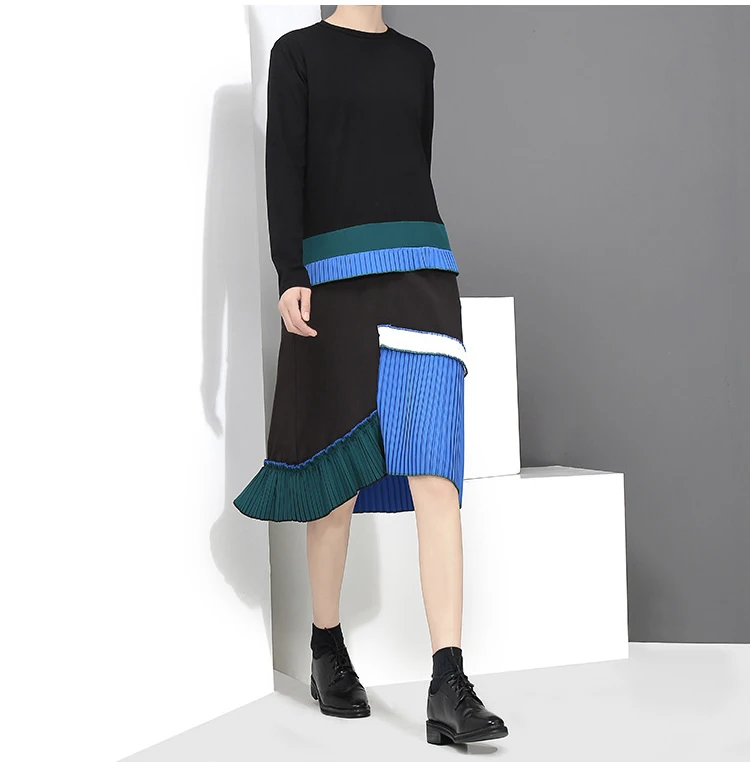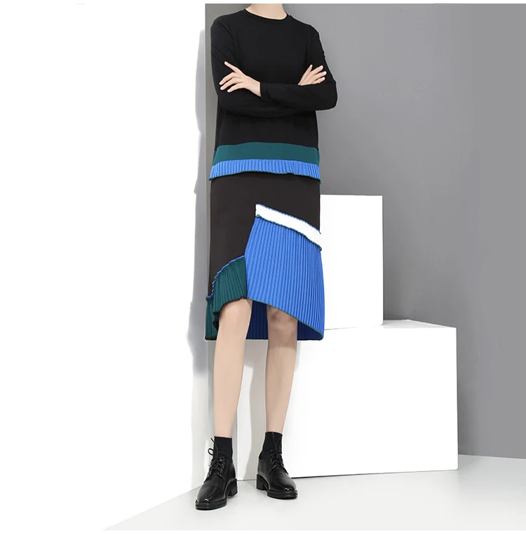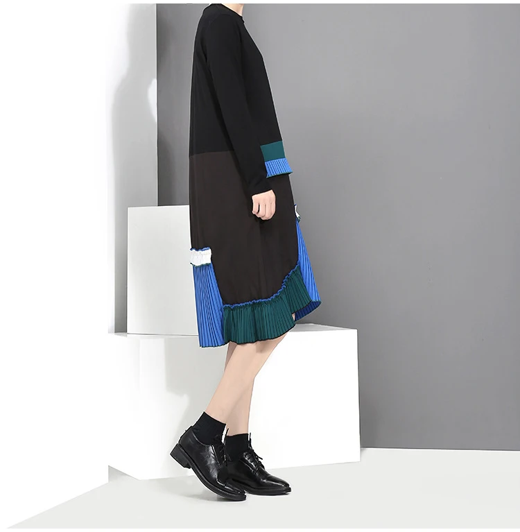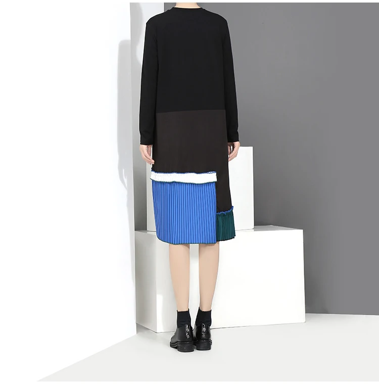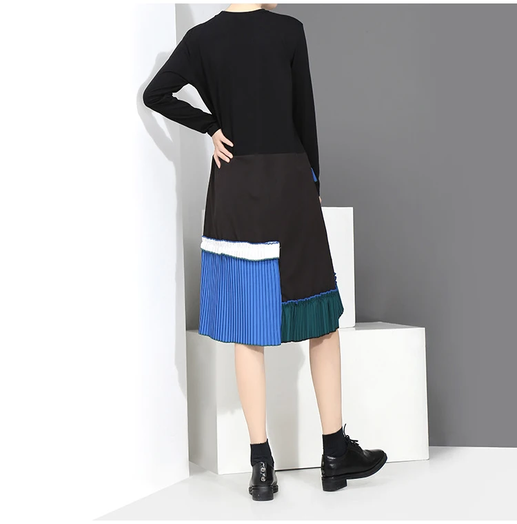 Женское осеннее повседневное плиссированное платье миди в стиле хиппи с длинным рукавом черного и синего цвета, женское праздничное платье 2845