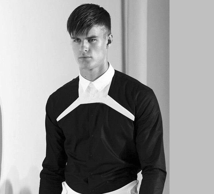 Весна 2016, Новое поступление, мужская рубашка, весна, индивидуальная Асимметричная короткая рубашка средней длины с косой пряжкой