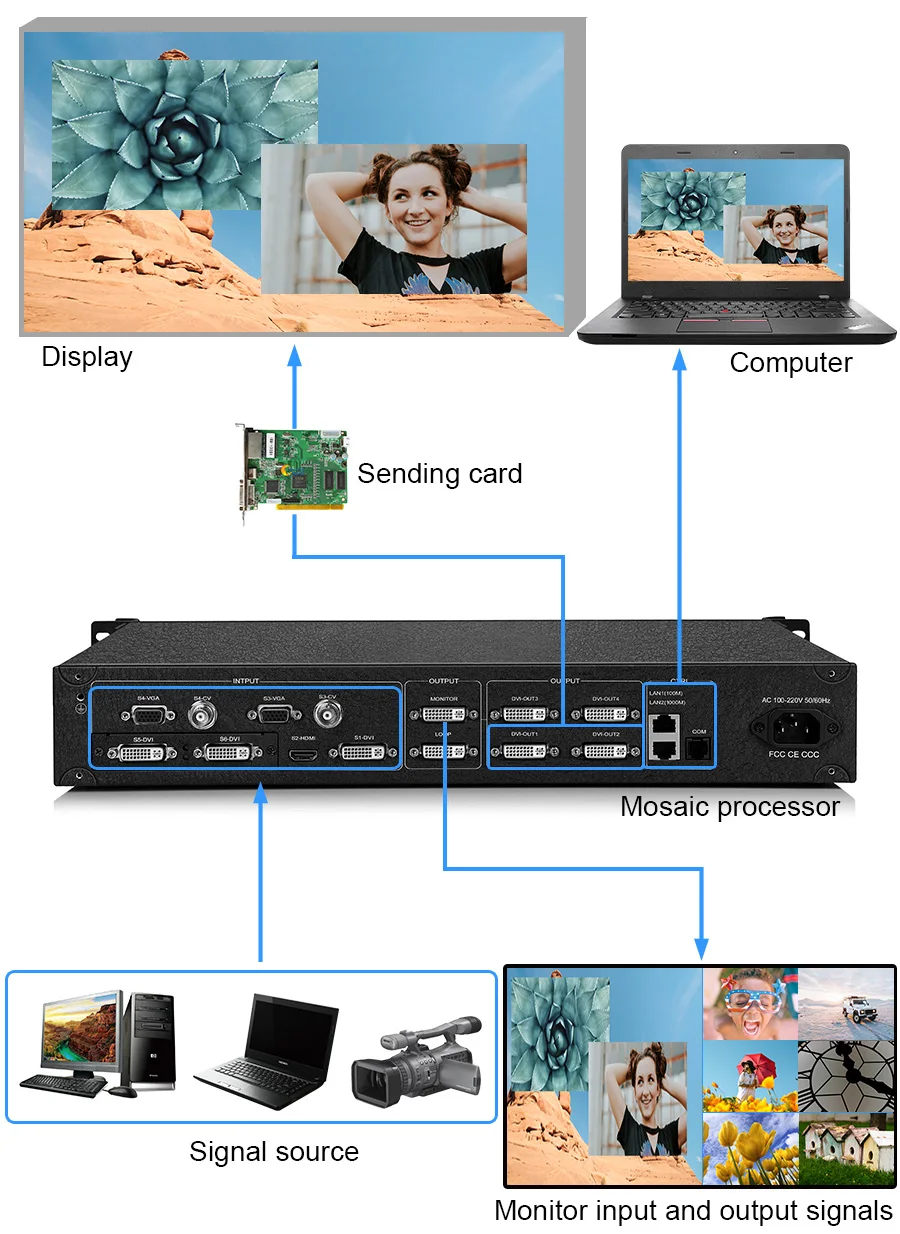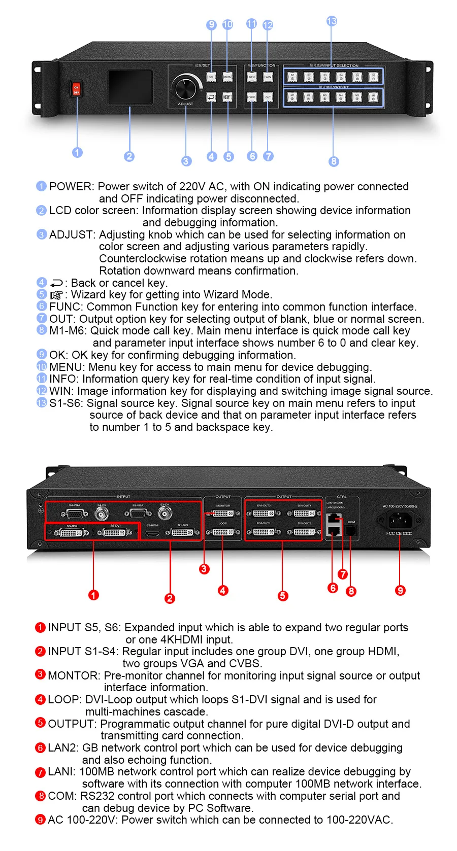 1. Поддержка различных входов сигнала включает обычные DVI, VGA, HDMI, CVBS, SDI и IP;
