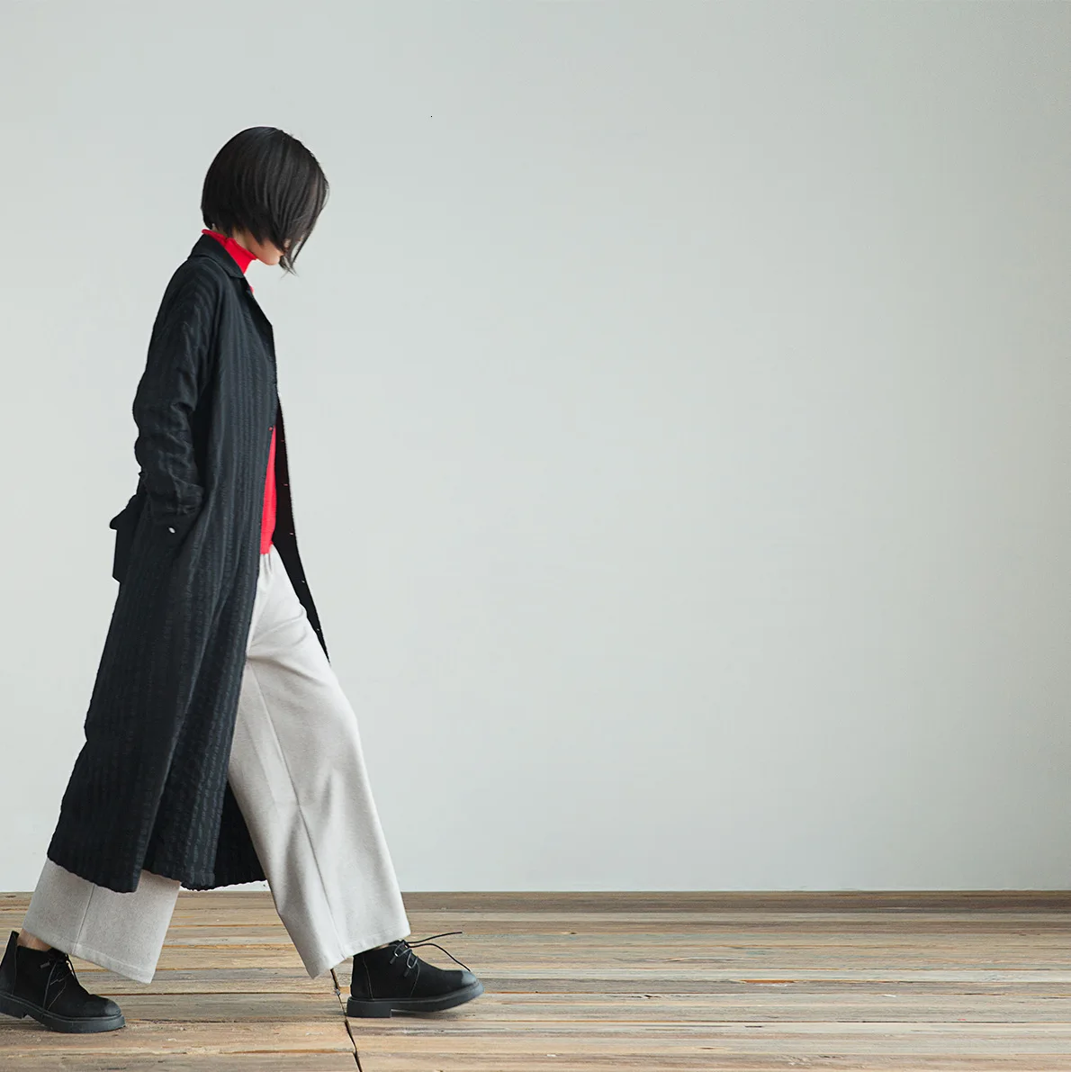 Fashion Woman Pisa Trench COAT BLACK/khaki Double Breasted cotton blend Drop Shoulder belted cuffs Oversized Long coats | Женская одежда