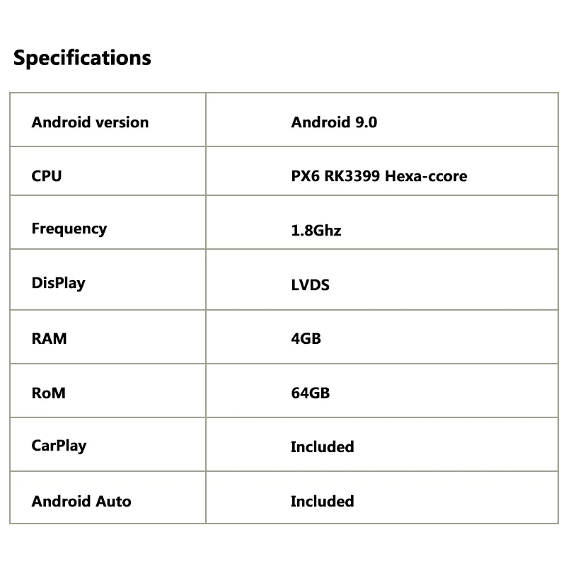 1. Он поставляется с высокими спецификациями в 4G + 64GB и процессором PX6 RK3399. 2. Пять видов пользовательского интерфейса для опциональной настройки. 3. Поддержка нескольких языков: английский, русский, арабский, испанский, иврит, корейский, японский .... 4. Позволяет загружать такие приложения, как YouTube, Netflix,Waze, Google map,Yandex и т. Д. 5. Зеркальное отображение телефона Android/IOS на экран OEM через Wi-Fi или usb-кабель через CarPlay/Android Auto. 6. Онлайн-карта: Google map , waze,HEMA... 7. Поддержка фабрики и дополнительных камер. 8. Видео входы для добавления обратной камеры, Фронтальная камера, 360 панорамные камеры ..... 9. Видео для монитора подголовника 10. Подключение к сети через Wi-Fi или sim-карту через 4g USB-ключ. 11. Bluetooth для hands free ответить на телефон и OBD показать информацию на приборной панели. 12. Простая установка Plug and play 13 · Поддержка сплит-экрана Советы: мы можем использовать адаптер HDMI-AV для передачи выхода HDMI на av-выход, если OEM с AV.