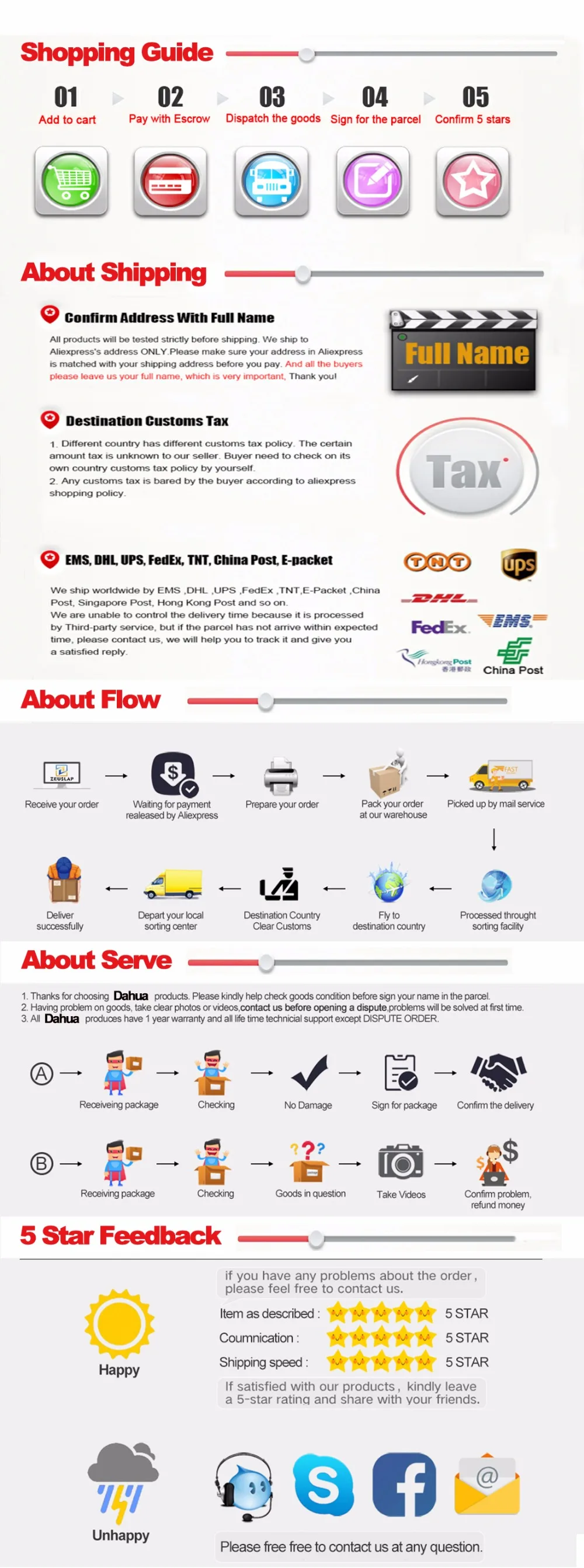 About products: 1.You get what you pay for.We will try to provide more high quality goods to the buyer. 2.All products are the real description in our shop. Please read product descriptions carefully. 3.If you have any questions about the product.Please leave a message to us. About payment: 1.Support the credit card(RMB and Dollar) WebMoney(WM),TT,West Union , Qiwi wallet, Boleto(Brazil), SOFORT Banking , Alipay , etc. About shipment: 1. We will send the order within 3 days when we get your payment. (Except holiday) 2. WORLDWIDE SHIPPING. (Except some Special countries and APO/FPO) 3. SERVICE TRANSIT TIME is provided by the carrier and excludes weekends and holidays. Transit times may vary, particularly during the holiday season. 4.The delivery time on all international shipments can't be guaranted by us, due to differences in customs clearing times in individual countries, which may affect the effectiveness of your receptions. Please note that all additional customs fees, brokerage, fees, duties, and taxes for importation into your country will be in your charge. These additional fees may be collected at time of delivery. We will not refund shipping charges for refused shipments. Warranty & Maintenance: Feedback: Your satisfaction and positive feedback is the great support to us. If you are satisfied with our items and services, Please don't hesitate to leave your positive feedback and 5 stars. Important Remark: If you have any problems with our items or services, please feel free to contact us first before you leave negative feedback.