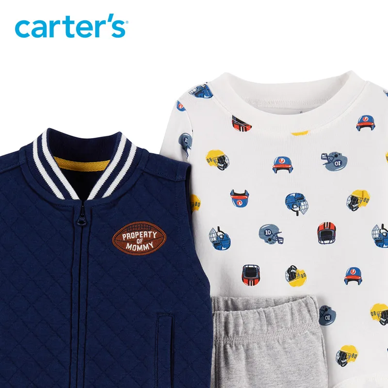 Just in time for football season and designed for all-day play, dressing is easy with this ready-to-wear matching set. Featuring a zip-up quilted vest and easy-on pants, this 3-piece set is complete with a coordinating cotton bodysuit.