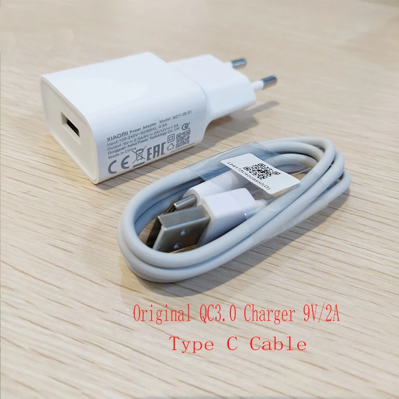 Оригинальное зарядное устройство XIAOMI, штепсельная вилка европейского стандарта QC3.0, быстрый адаптер 5 в 2.5A/9 в 2A, кабель типа C для Mi 8 6 A1 6X 5X 5C 5s plus MIX Mix2 2S Note 2 3