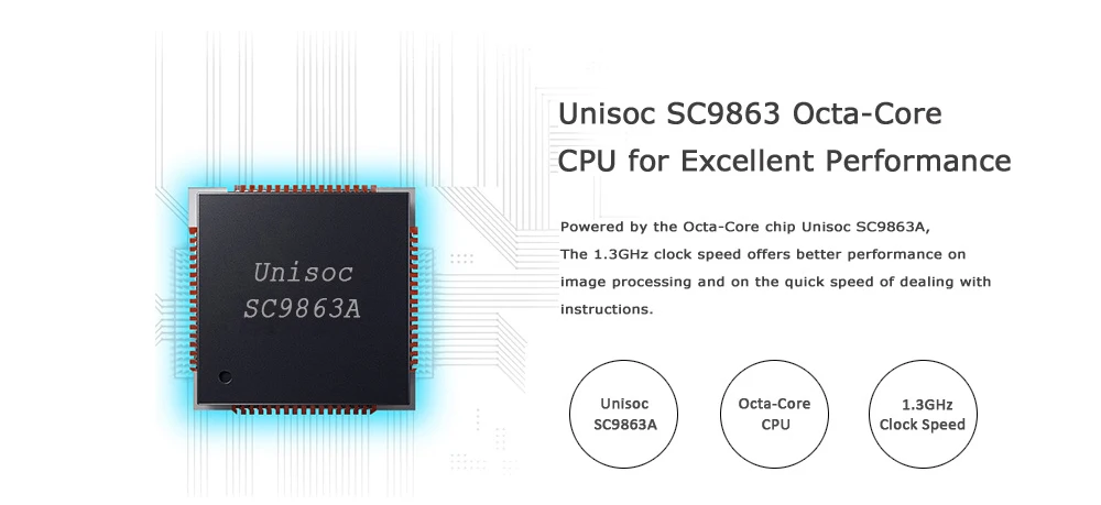 BDF-M107 питается от восьмиядерного процессора UNISOC SC9863A, который обеспечивает высокую производительность и низкое энергопотребление.