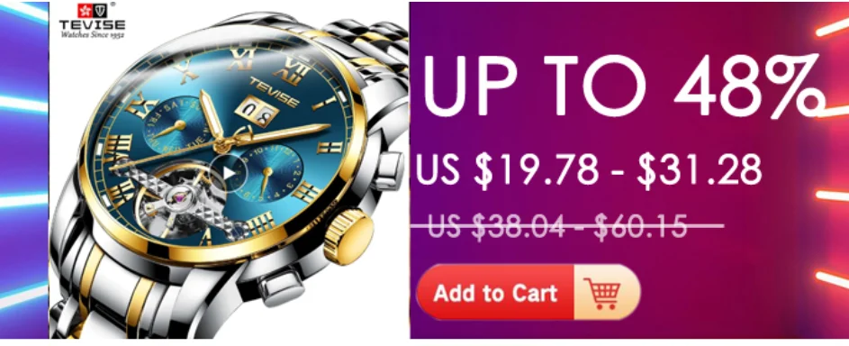 -100% новые, с этикеткой, оригинальный Высокое качество TEVISE Брендовые Часы