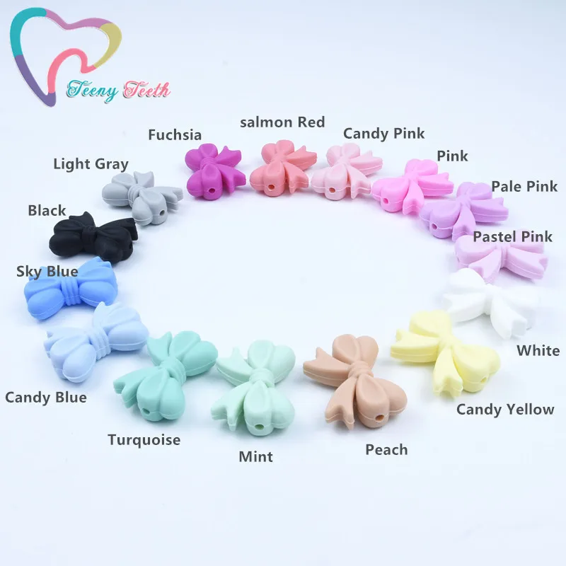 100 PCS Candy Color Bowknot Silicon Beads BPA Free Bow Tie Baby Teething Bead For DIY Jewelry Making Chewable Baby Teething Gift