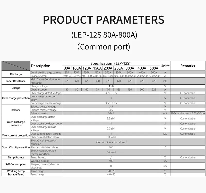 Изюминка: для той же модели ток заряда меньше, чем ток разряда, потому что Daly PCBAs были обновлены, чтобы хорошо защитить батарею клиента. По любому запросу, пожалуйста, свяжитесь с нами. Daly: январь 2020