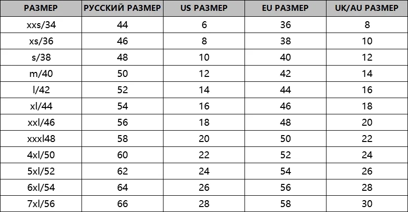 Пожалуйста, проверьте таблицу размеров перед заказом. Если вы не уверены в размере, пожалуйста, отправьте нам сообщение.