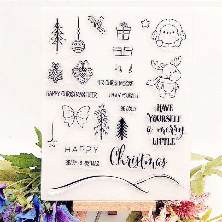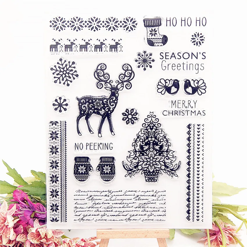 16,5*22,5 см рождественские лески прозрачные штампы/силиконовые уплотнения Ролик Штамп для DIY Скрапбукинг Фотоальбом/изготовление картUS $1,52