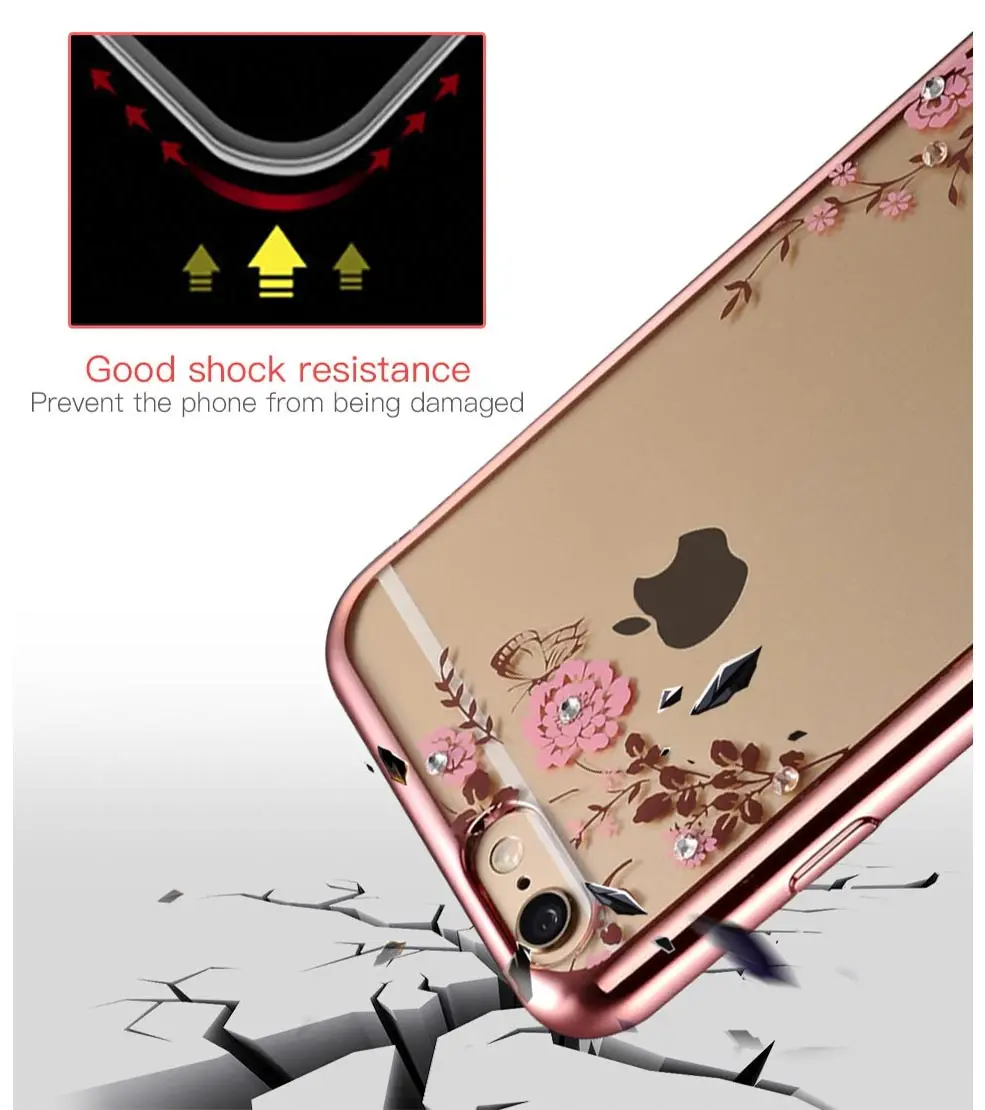 Flower Pattern Silicon Case For Apple iPhone X XS Max XR 8 Plus 6S 5S Floral Bling Soft TPU Protector For iPhone 7 6 Back Cover