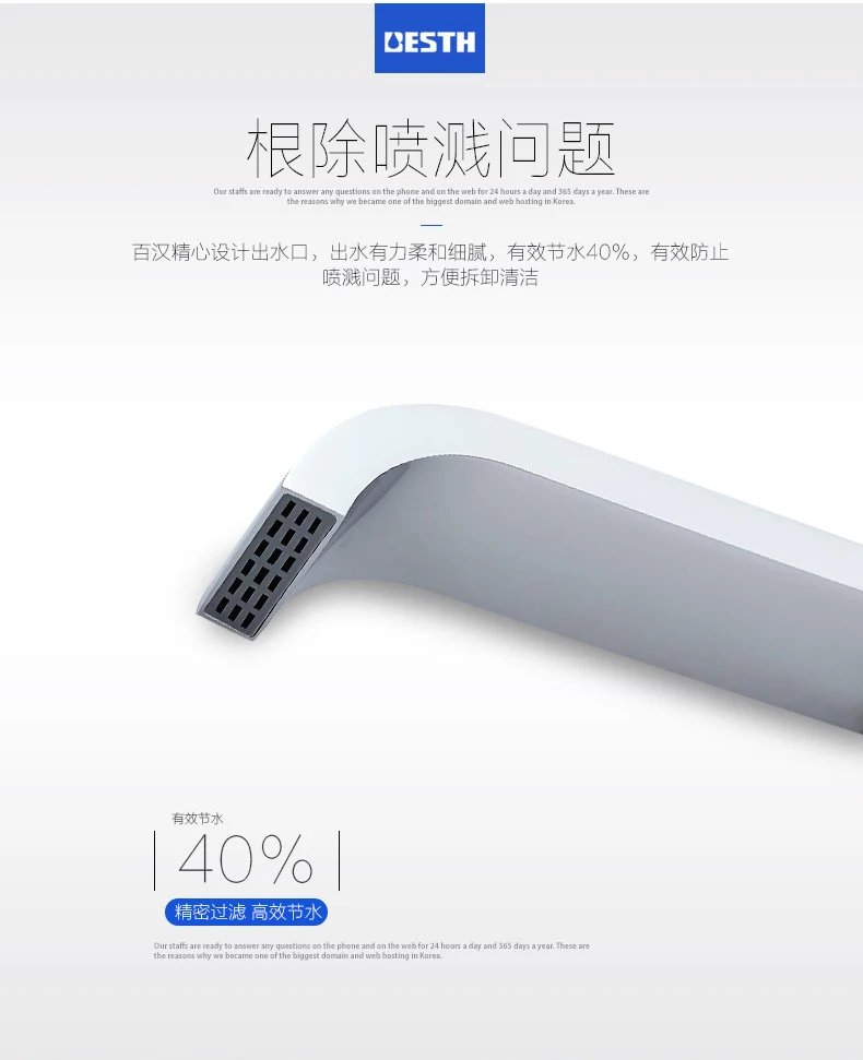 Аккуратно разработанная водовыпускная способность, вода мощная и деликатная, эффективная экономия воды на 40%, эффективно предотвращает проблемы с брызгами, легко разбирать и чистить
