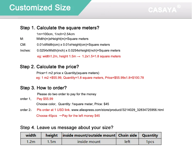 4. Максимальная ширина для России составляет 150 см, включая посылка. Пожалуйста, разделите большой размер на 2 шт. маленького размера, если ширина жалюзи превышает 150 см.