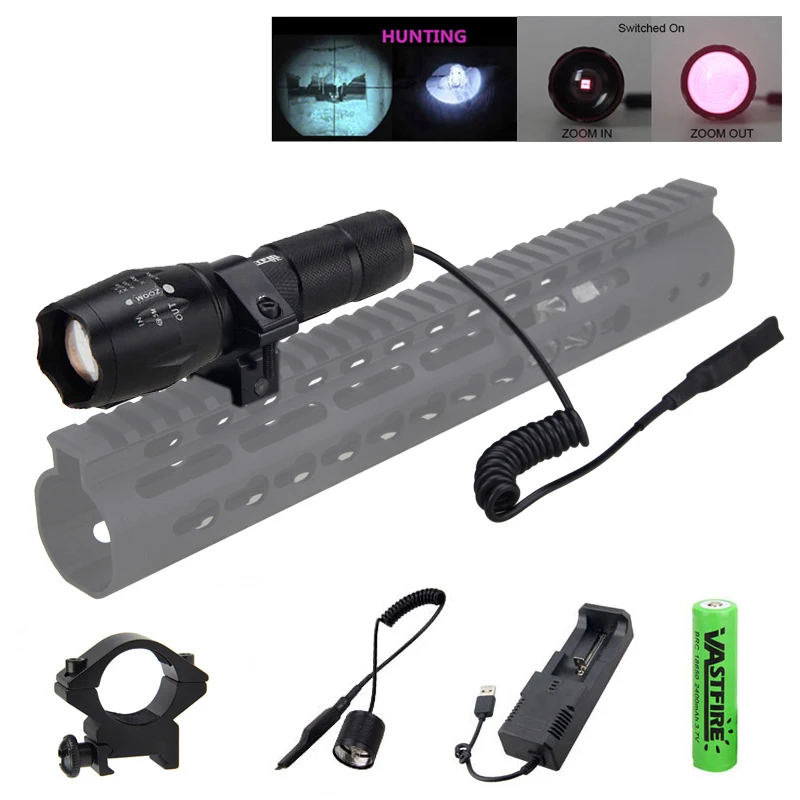 The LED chip from this flashlight turns red by naked eyes when the light on, however the light beam need to be detected by night vision scopes or non-IR filter cameras
