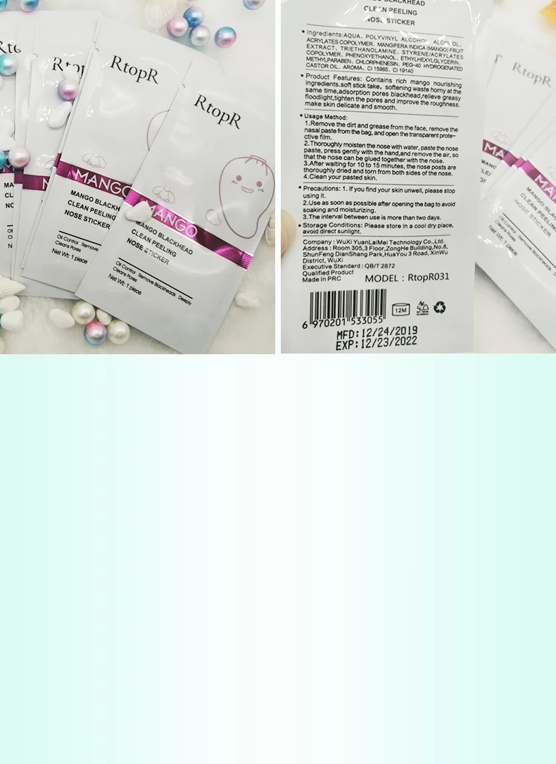 1. Удалите грязь и жир с лица, извлеките из мешка тенасовую пасту и откройте прозрачную защитную пленку. 2. Тщательно смочите нос водой, вставьте ленту, аккуратно нажмите рукой и удалите воздух, чтобы нос можно было склеить вместе с носом. 3. После ожидания 10-15 минут носоупоры тщательно высушиваются и разрываются с обеих сторон носа. 4. Очистите вашу наклеенную кожу.
