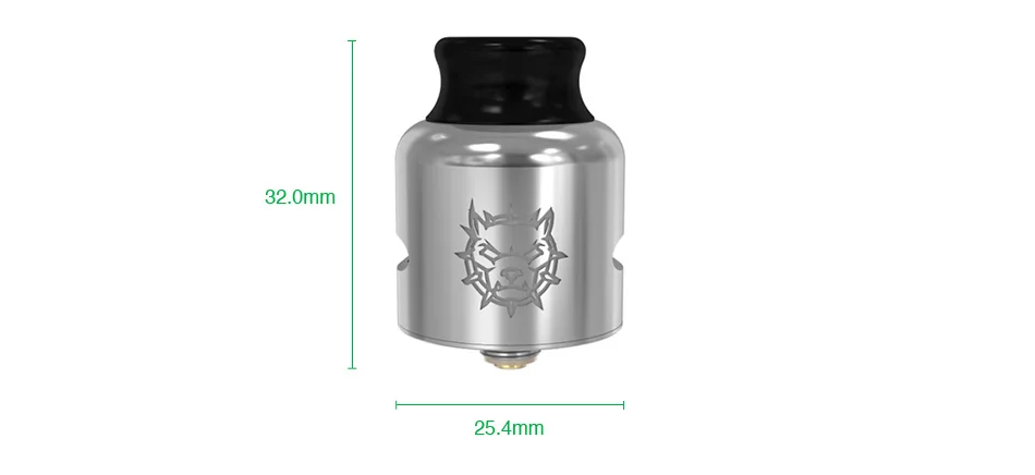 Size: (D)25.4mm x 32mm(26mm with glass cap) Max coil ID: 4.0mm Drip tip type: 810 Tread: 510 Juice well depth: 9mm Juice capacity: 1.5ml Material: Stainless Steel construction, glass