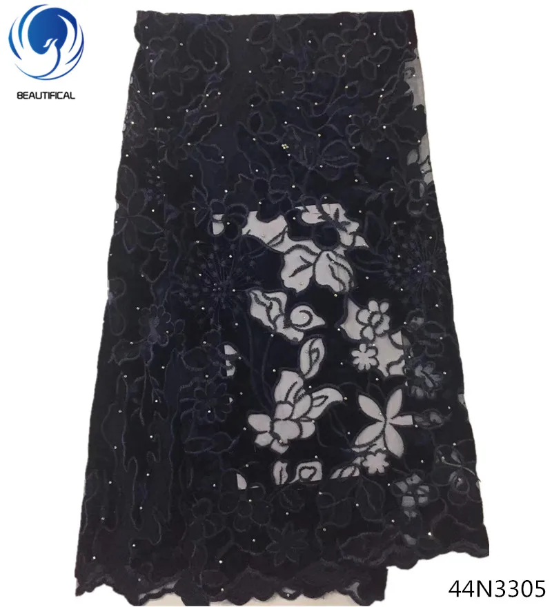 Красивая кружевная тесьма, французские кружевные ткани с бусинами, лиловый Фатин, кружево с камнями, 5 ярдов/шт, продажа 44N33