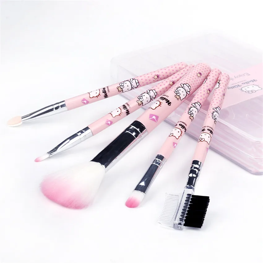 Набор розовых кистей для макияжа kitty, 5 шт., включая: румяна, тени для век, ресницы для бровей и губ