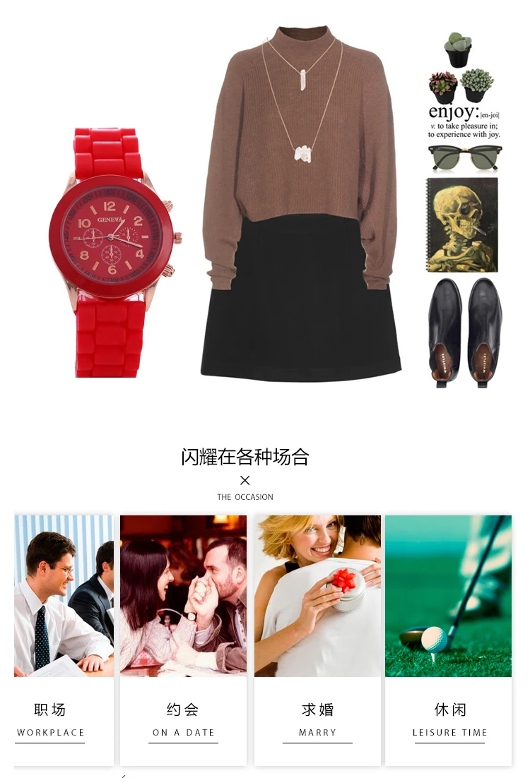 Бренд:НовинкаЦвета: красный, желтый, зеленый, синий, черный, белый, розовый, коричневый, розовый, зеленый, оранжевыйРемешок: СиликонПол: женщин, женщин, девушекЧасовой механизм: кварцевыйМатериал: нержавеющая сталь, стекло,СиликонРазмер: Длина ремешка: 25 см, диаметр: 4 см, ширина ремешка: 2 смЗащита: подарок/личный/бегУпаковка: Opp мешок + желтый крафт-бумага мешок пузыряВес: 50 г/шт.Смотрите так же другие товары: