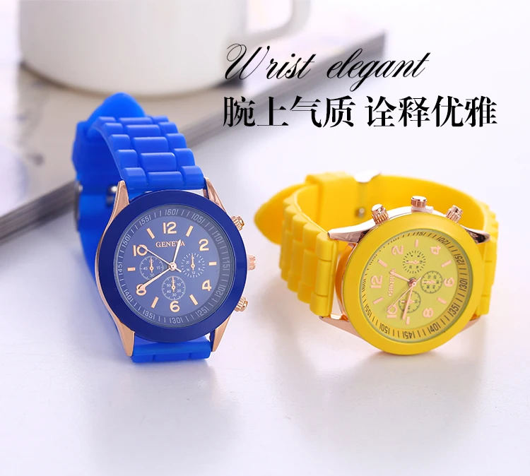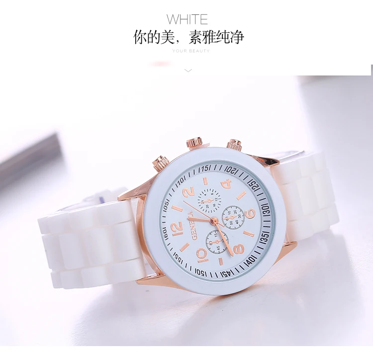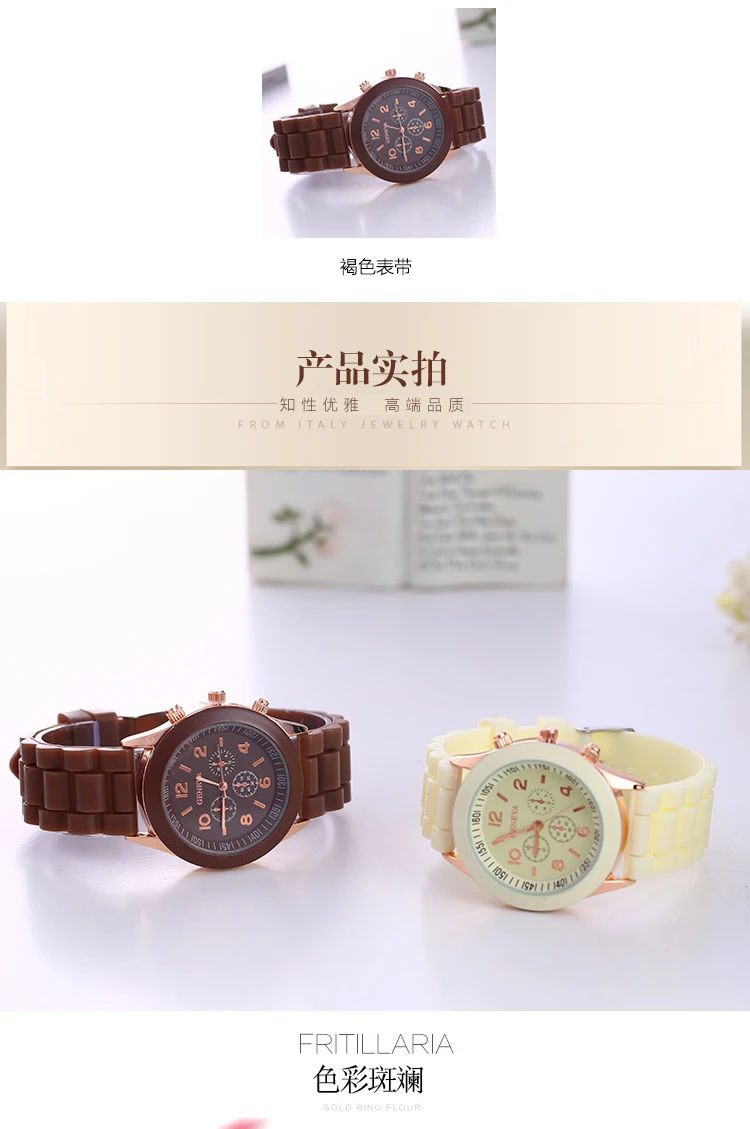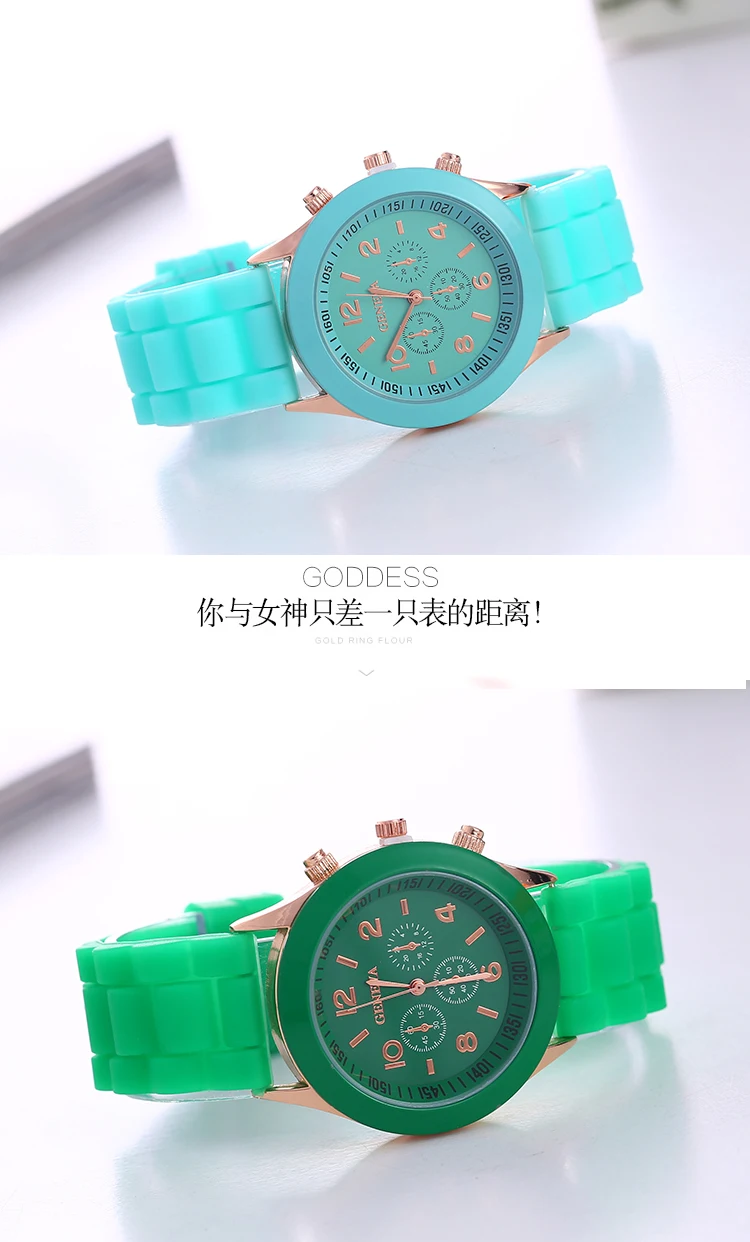 Новый известный бренд Rosy Gold Geneva повседневные кварцевые часы женские силиконовые часы Relogio Feminino Наручные часы горячая Распродажа часы