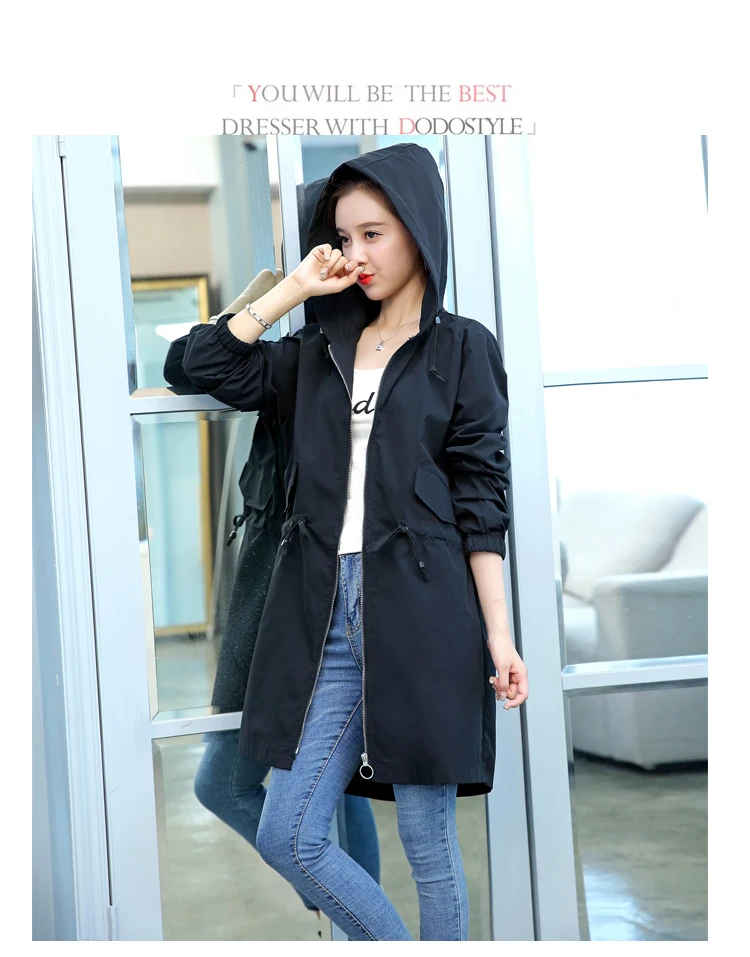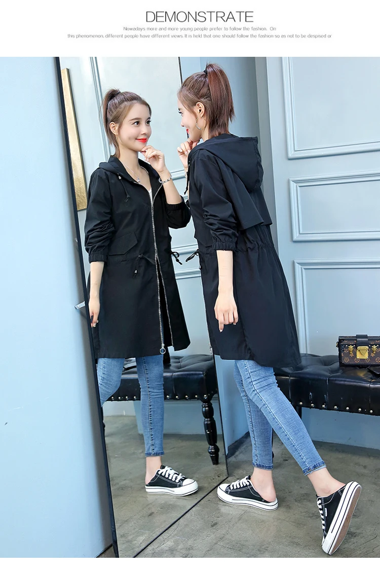 2020 Модный черный двубортный тонкий длинный Тренч с отложным воротником стильные