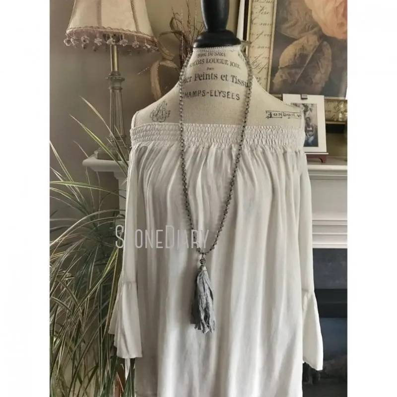 NM18227 потертый Бохо шикарный матовый серый бисер серебряное сари ожерелье с шелковой кисточкой универсальный аксессуар забавные ювелирные изделия 32 дюйма
