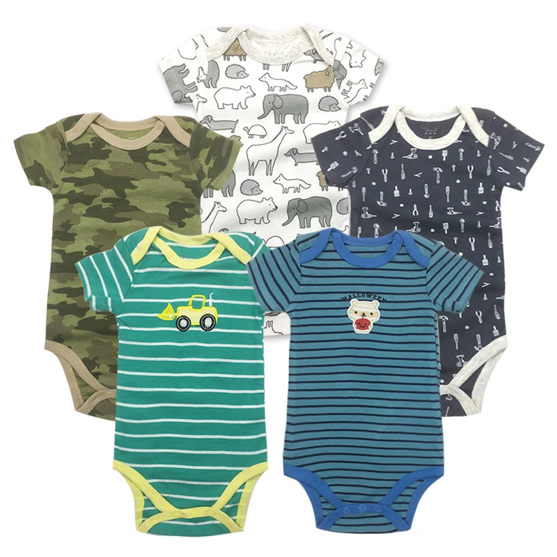 Цвета и узоры быстро обновляются,Отправляется случайным образом.Вы можете выбрать цвет для мальчика или девочки.5 шт./упак.Детский комбинезон из 100% хлопка.Подходит для детской одежды на все сезоны.Размер: 3 м, 6 м, 9 м, 12 м, 18 м, 24 мОдежда из эластичного материала, измерения не влияют.
