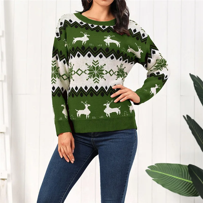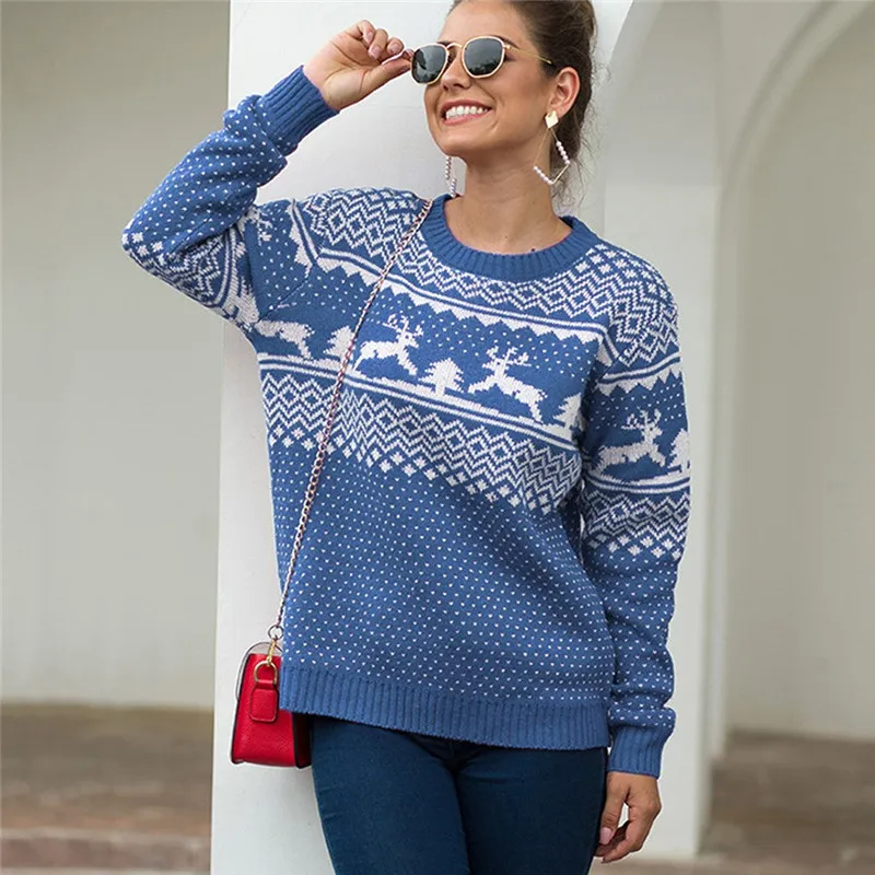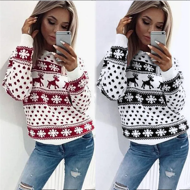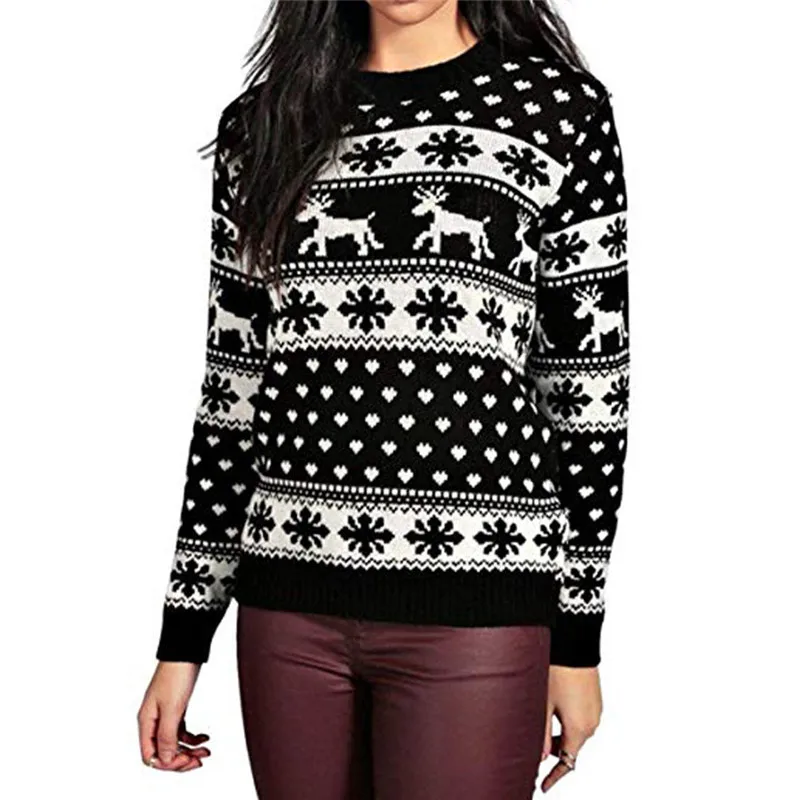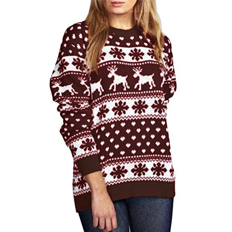 Рождественский свитер 2020 женский Рождественский цветочный принт с длинным рукавом Блузка свитер круглый вырез пуловер Camisola