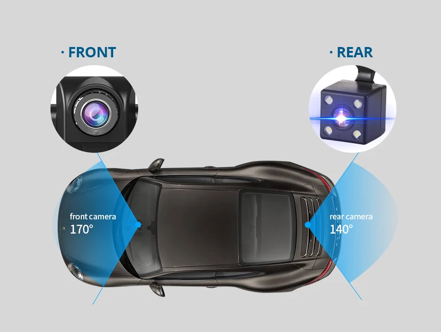 Этот автомобильный видеорегистратор имеет камеры, которые позволяют одновременно записывать видео с двух разных углов. Когда автомобиль в задней части, этот Автомобильный видеорегистратор автоматически переключает ti резервную камеру вид изображения парковочной линии