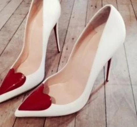 Привлекательные туфли с красным сердцем на высоком каблуке 12 см, с острым носком, черные, белые, лакированные, стильные