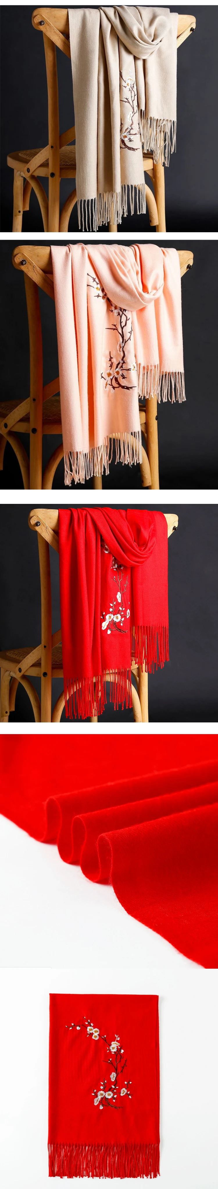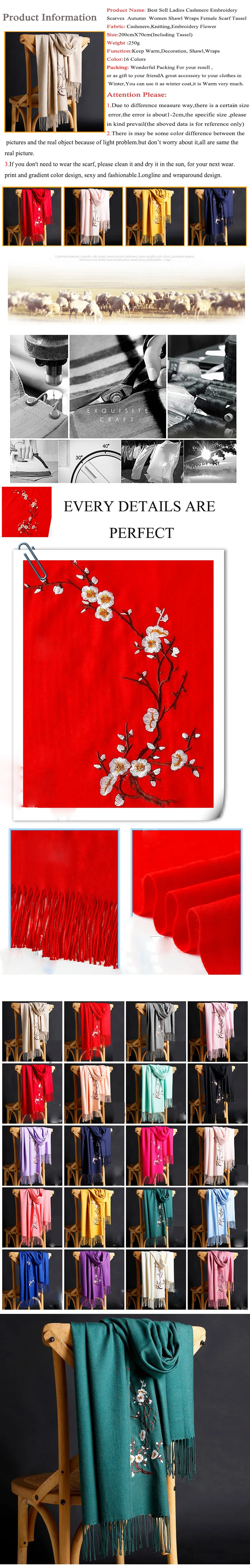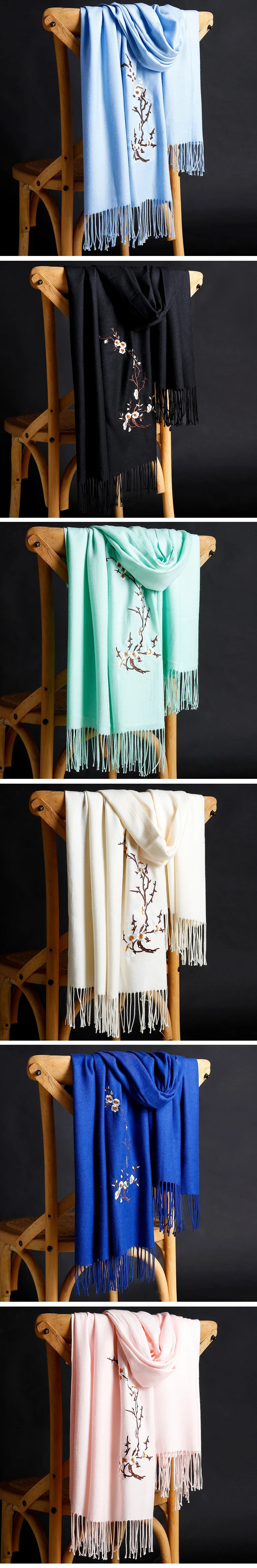 16 цветов, осенне-зимний Дамский кашемировый шарф с вышивкой, Модный женский однотонный теплый толстый шарф с вышивкой, шали, шали, пашмины, с кисточками