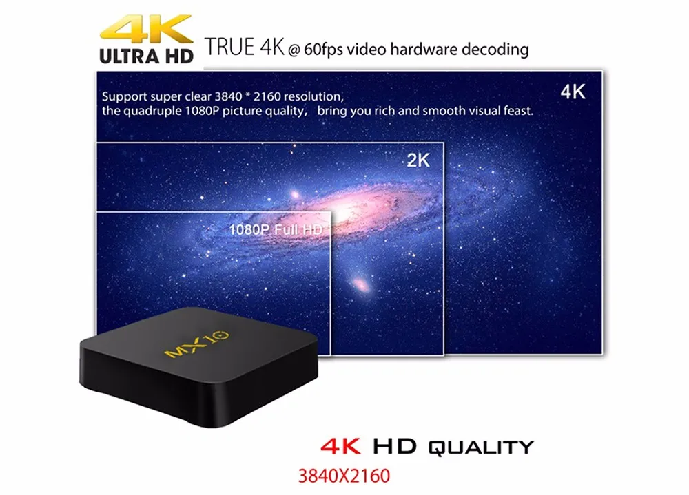 Это лучший выбор для вас, чтобы иметь Гладкий опыт, чтобы смотреть видео или играть в игры, потому что он оснащен четырехъядерным процессором ARM Cortex-A53 RK3328. С 4 Гб DDR3 Оперативная память и 64 GB EMMC ROM, вы можете скачать все, что вам нравится, держать их и наслаждаться ими. Разрешение 4 K x 2 K позволяет вам чувствовать себя видео высокой четкости! Поддержка WiFi 2,4G.
