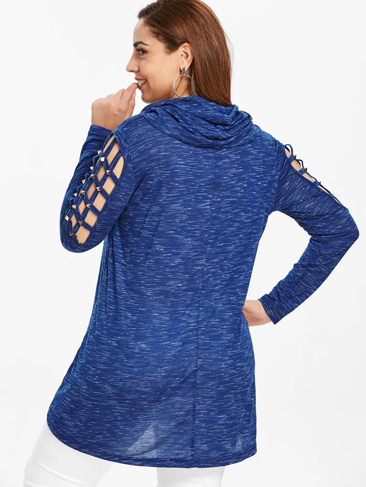Женская футболка большого размера Wipalo, осенняя футболка с капюшоном, длинным рукавом и высоким низом, украшенная заклепками, большие размеры